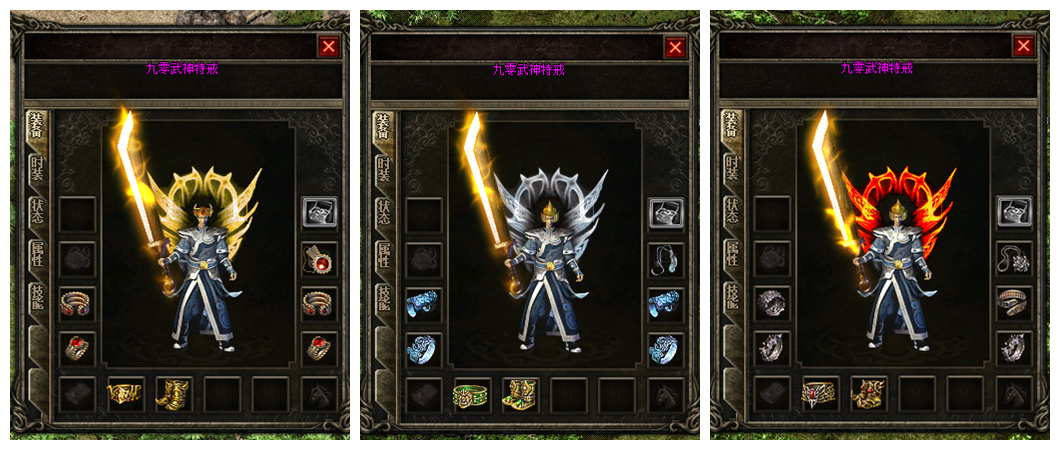 祖玛装备--赤月装备--雷霆装备--战神装备--武神装备(全自动微端更新) 金币可以通过打装备回收和捡垃圾回收,任何人的装备靠自己打。充值走平台,谈比例的请绕道,技能书尸王和白野猪可爆。各职业新衣服只能在6个暗之地图及暗之BOSS及重装使者爆出。终极装备及特戒在20000血的BOSS身上爆出,BOSS刷新在176各地图底层及新地图